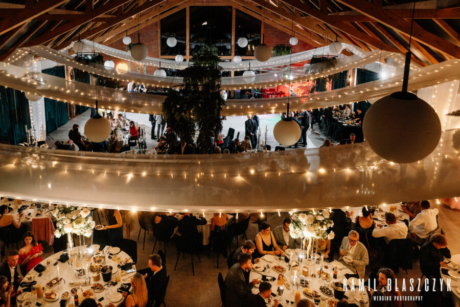 Jedno z miejsc na mapie Łodzi, które nawiązują do historii miasta, a przynajmniej doskonale wykorzystują wnętrza odrestaurowanych fabryk z XIX wieku. Dawniej znajdowała się tutaj szarpalnia wełny, należąca do imperium włókienniczego Ludwika Grohmana. Dzisiaj miejsce to znane jest przede wszystkim z wybornego, kraftowego piwa i bardzo dobrej kuchni. Ciekawie urządzona sala bankietowa, w której organizowane są wesela, przyciąga zwolenników subtelnych dekoracji i ponadczasowych rozwiązań. Na wyróżnienie zasługuje częściowo przeszklony dach, który dodaje wnętrzu kolorytu. Ciekawe jest również otoczenie samego lokalu weselnego – bezpośrednie sąsiedztwo Parku Źródliska i loftowej części Łodzi stwarza okazję do bardzo ciekawej sesji ślubnej. Lokal ten znalazłby się w mojej trójce najlepszych miejsc na wesele w Łodzi. Jeśli szukasz więc oryginalnego miejsca na wesele w stylu industrialnym w Łodzi to Browar Księży Młyn jest oczywistym wyborem. Rekomendacja doświadczonego fotografa ślubnego to nie przelewki 😉